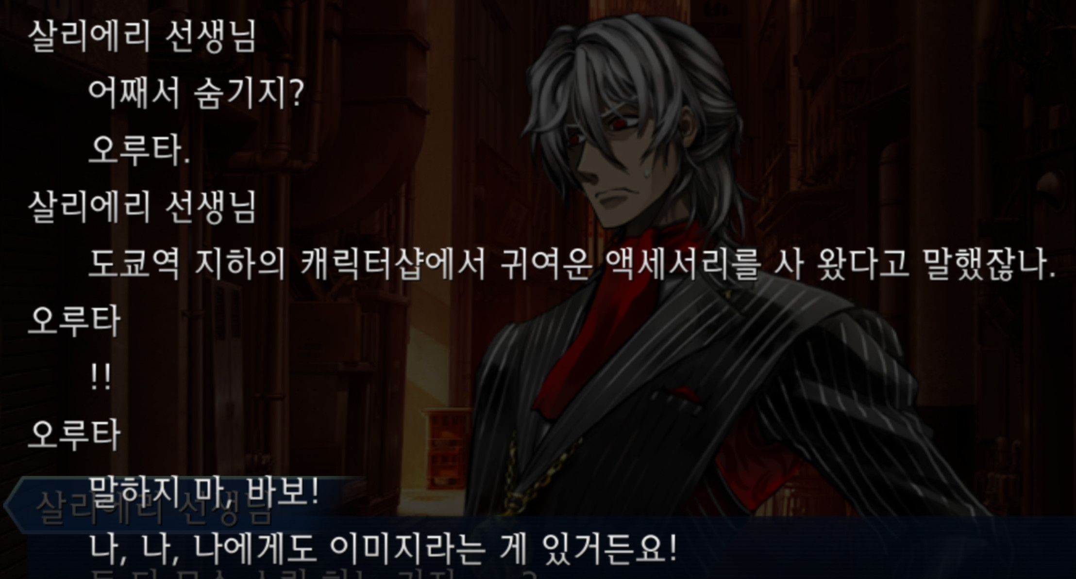 그래서 리츠카가 흑화한 뒤에 흑잔한테 쌀쌀맞게 구는 선택지 뜰 때마다 너무 가슴이 아팠다 ㅠ ㅠ (나는 사랑하는데 리츠카가 지금 그럴 상황이 아니래...)